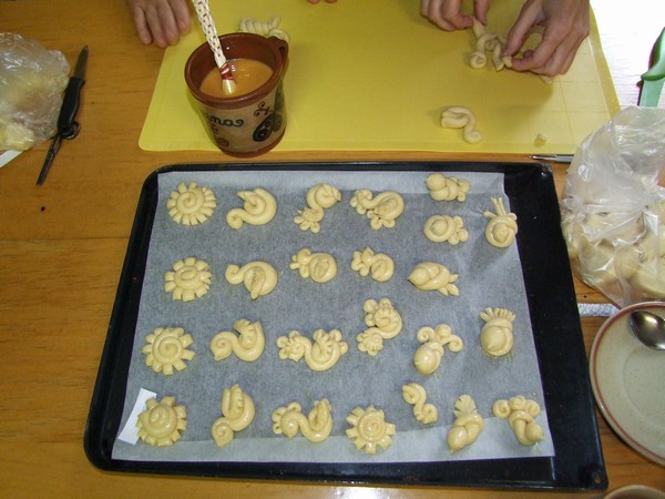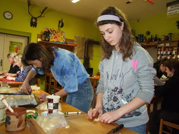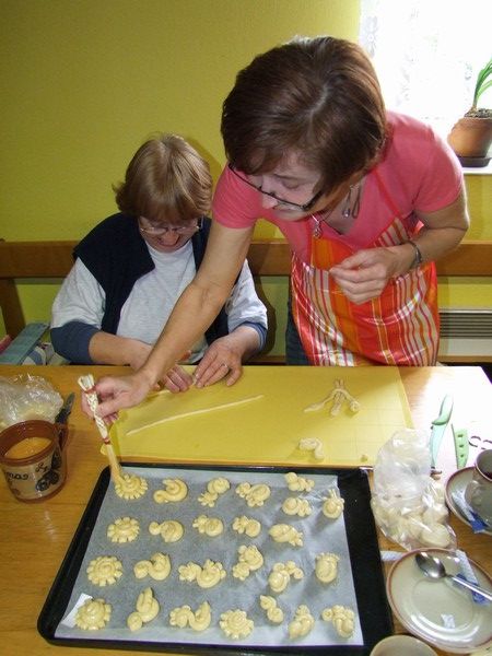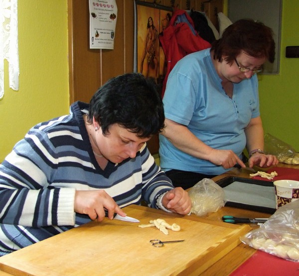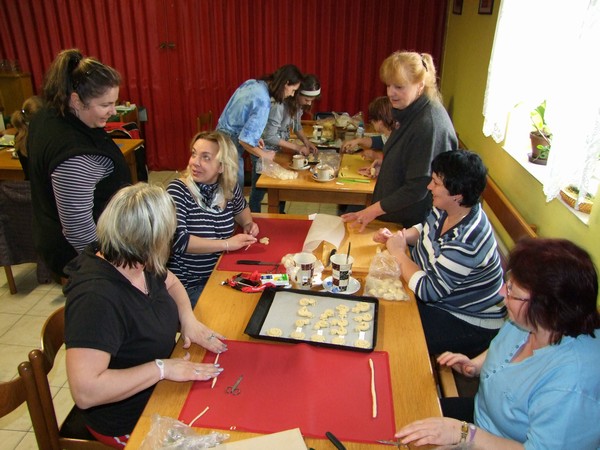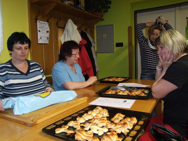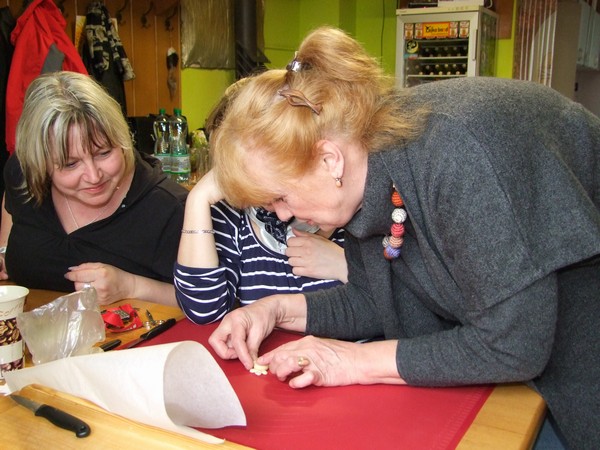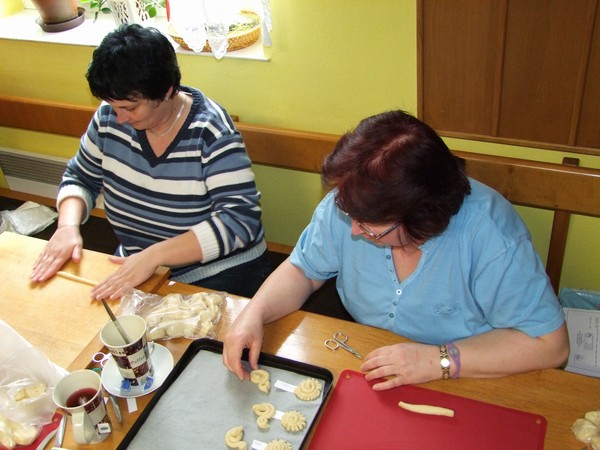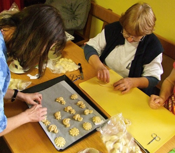 V březnu 2012 se členky klubu šikovných rukou seznámily s obřadním pečivem. Pod vedením lektorky Ivany Staré z Českých Budějovic si každá z účastnic kurzu mohla vyzkoušet vytvarovat více menších tvarů. Foto RV
